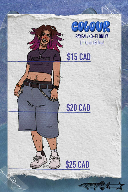A background colour of your choice is included in the pricing already!Comms without photo refs/requiring me to design large elements will be considered character designs and will have a fee of +50%If a character/pose is particularly complex the price of the comm is subject to change as I see fit!